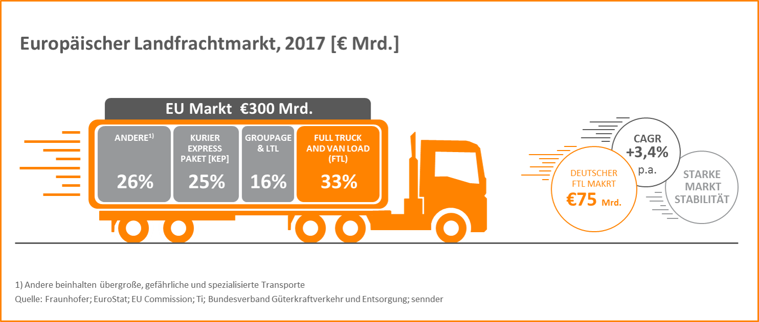 Within the FTL (full truckload) sub-segment (25% of land freight) sennder (Germany) mixes the market up and shows how complete truckloads are booked, managed, and executed. In this process, the company has a technology focus, which bypasses intermediaries and the entire communication and the flow of information between the sender and the receiver run digitally.